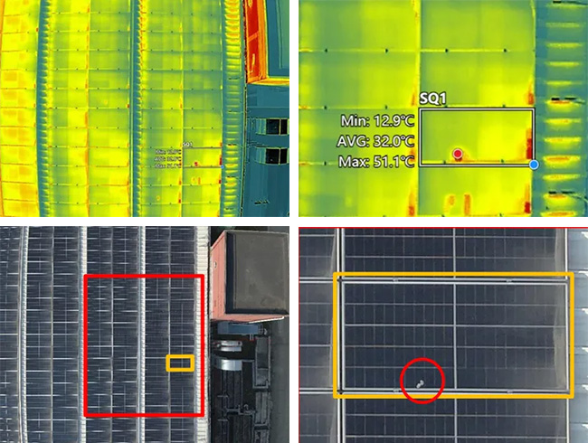傳統(tǒng)的運(yùn)維管理方法依靠專業(yè)人員巡檢和定期維護(hù),存在著成本高、效率低、安全風(fēng)險(xiǎn)大等問題。吳都能源以科技賦能場站管理,利用無人機(jī)熱成像技術(shù)為所持有光伏電站開展日常巡檢和維護(hù)。除實(shí)現(xiàn)光伏組件灰塵覆蓋、表面破損、硅片碎裂、隱裂等故障引起的熱異常情況診斷和精確定位外,經(jīng)統(tǒng)計(jì),整體工作量相較于人工巡檢降低80%。無人機(jī)補(bǔ)充高空點(diǎn)位,讓整體巡視覆蓋點(diǎn)位數(shù)量提升60%。同時也大幅減少安裝攝像頭的數(shù)量,讓智能運(yùn)維投入成本降低,真正做到“取代人工,降本增效”。